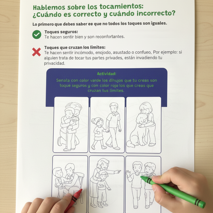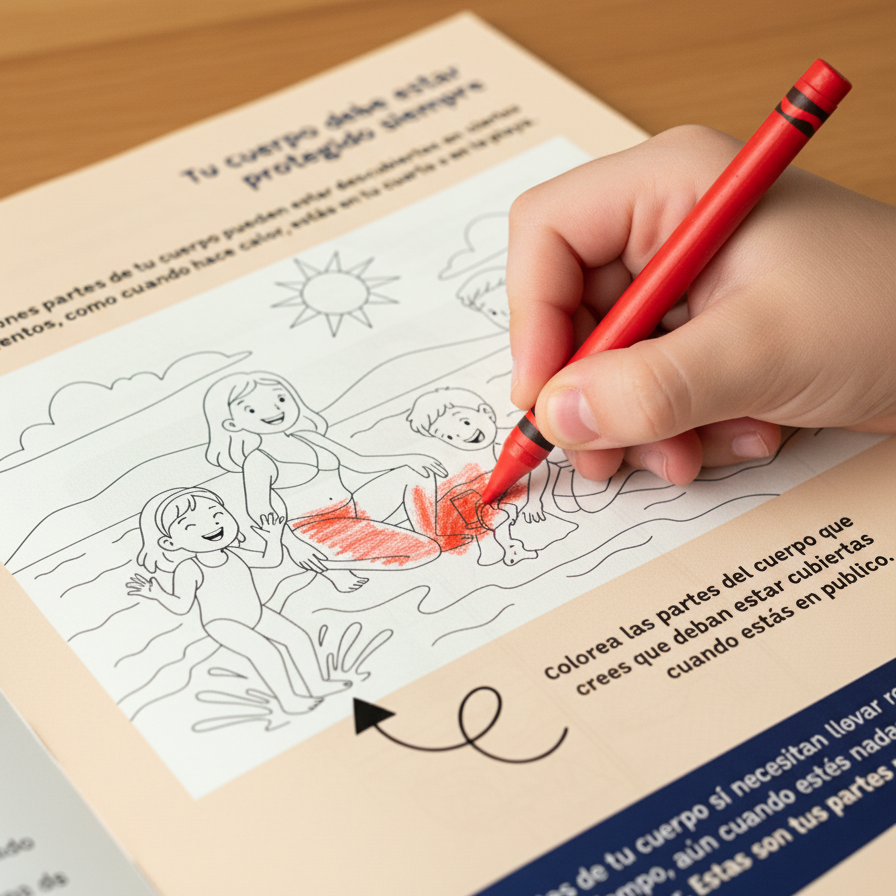 La Cartilla para colorear “Mi cuerpo es mío” transforma el aprendizaje en una experiencia divertida y educativa. A través de dibujos, juegos y reflexiones sencillas, enseña a los niños sobre el respeto por su cuerpo, los tocamientos buenos y malos, y cómo identificar situaciones de riesgo.